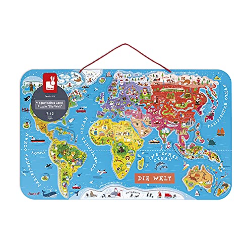 Janod – Puzzle Magnético Del Mundo De Madera, Version En Alemán, 92 Piezas (j05490)